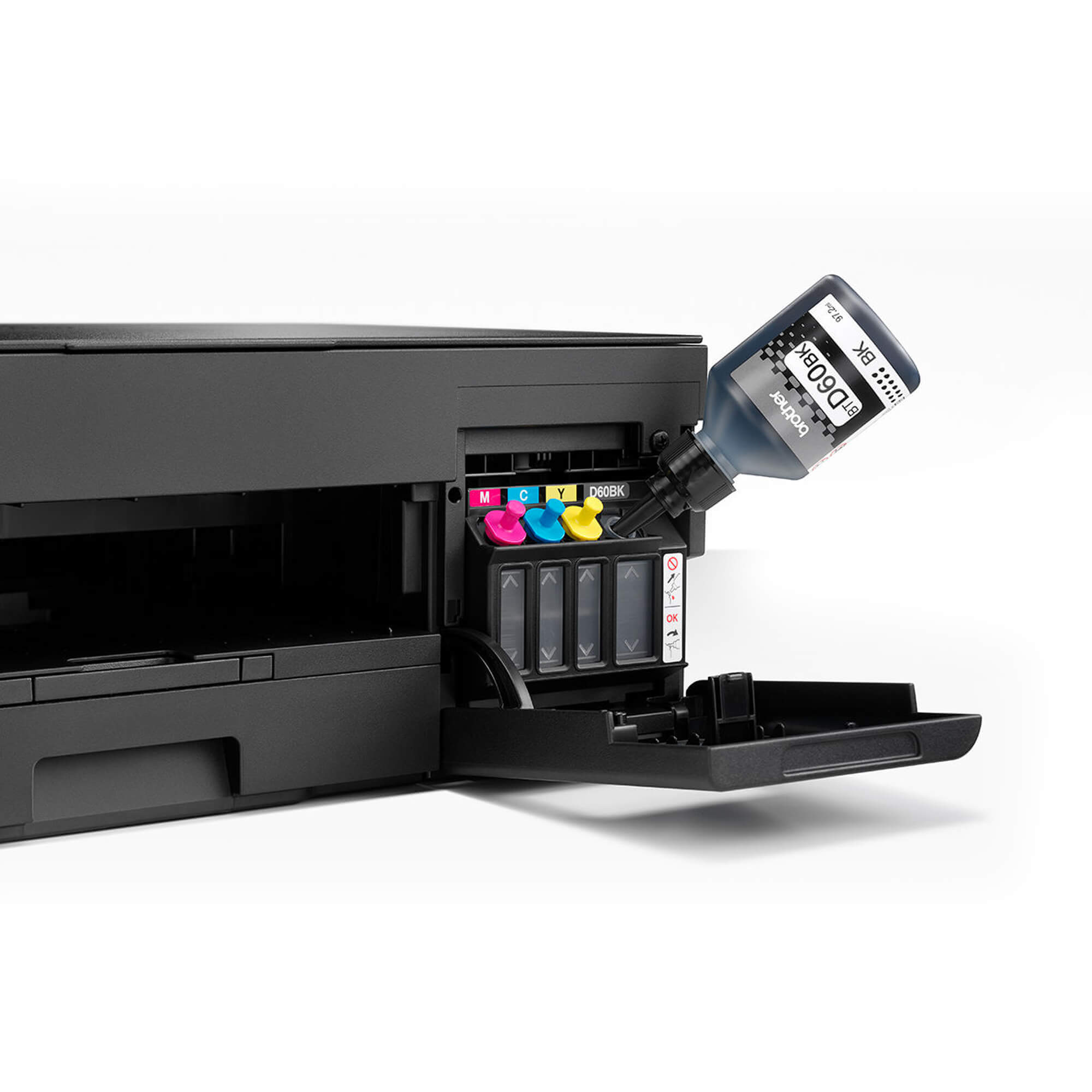 U kutiji s DCP-T425W primit ćete primit ćete 1 crnu bočicu (do 7.500 stranica), 1 cijan bočicu (do 5.000 stranica), 1 magenta bočicu (do 5.000 stranica) i 1 žutu bočicu (do 5.000 stranica). To će vam pomoći da što prije udigneš i pokreneš posao, a uz tako dugotrajnu tintu možete uživati u izuzetno niskim troškovima po stranici.